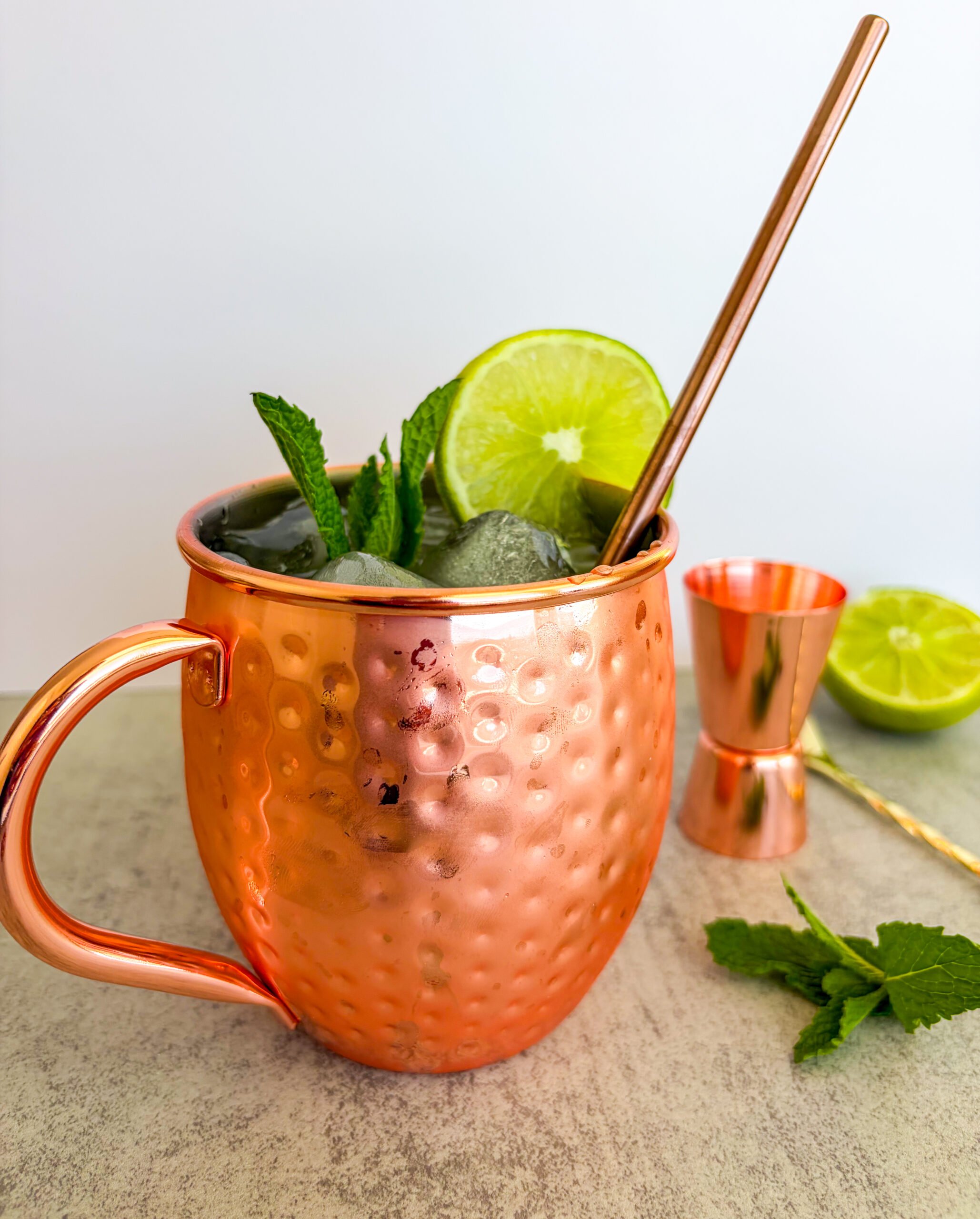 Why a copper mug, you ask? The copper mug isn’t just for show. It keeps your Moscow mule extra cold from the first sip to the last. The metal hugs the ice and lime, giving you that crisp, refreshing chill. Plus, it’s part of the drink’s signature look!